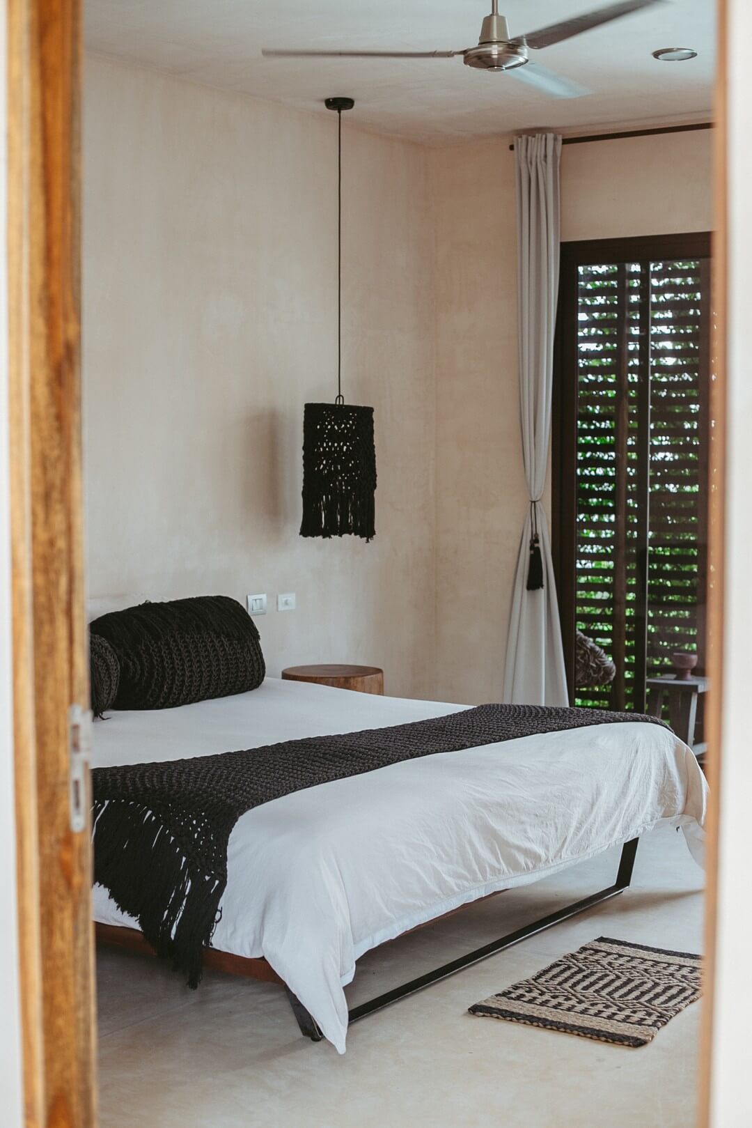 Your refuge in Tulum, our standard room celebrates simplicity and comfort with a selection of eclectic treasures and organic, tactile materials. Each piece is hand-picked and highlights the power of craftsmanship. This room is located on the ground floor of the hotel. The modern bathroom features a shower and heavenly toiletries. Sleeps 2.